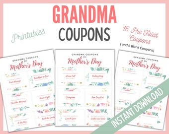 Coupons for Grandma | Etsy Grandparents Day Printable Coupon Book, Mothers Day Gift for Grandma, Fathers Day Gift for Grandpa, Birthday Voucher Template from Grandkids. PictureKeepsakeGifts. (434) $2.50. $5.00 (50% off)