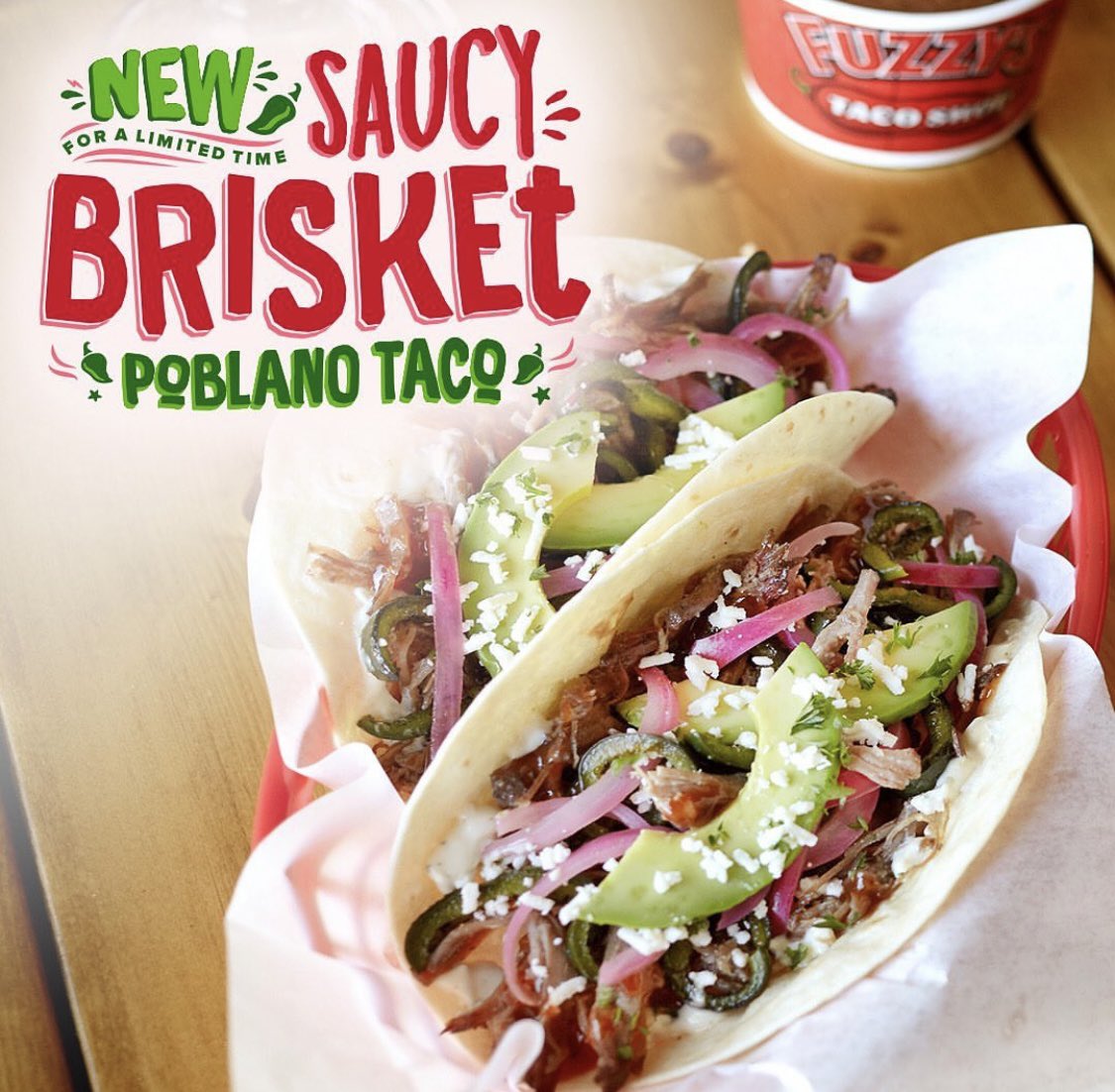 Fuzzy’s Taco Shop Adds New Saucy Brisket Poblano Taco to its ... Oct 12, 2022 · IRVING, Texas--(BUSINESS WIRE)--Oct 12, 2022--Fuzzy’s Taco Shop announces the addition of the Saucy Brisket Poblano Taco to its menu, available for a limited time. The new taco offers a twist on ...