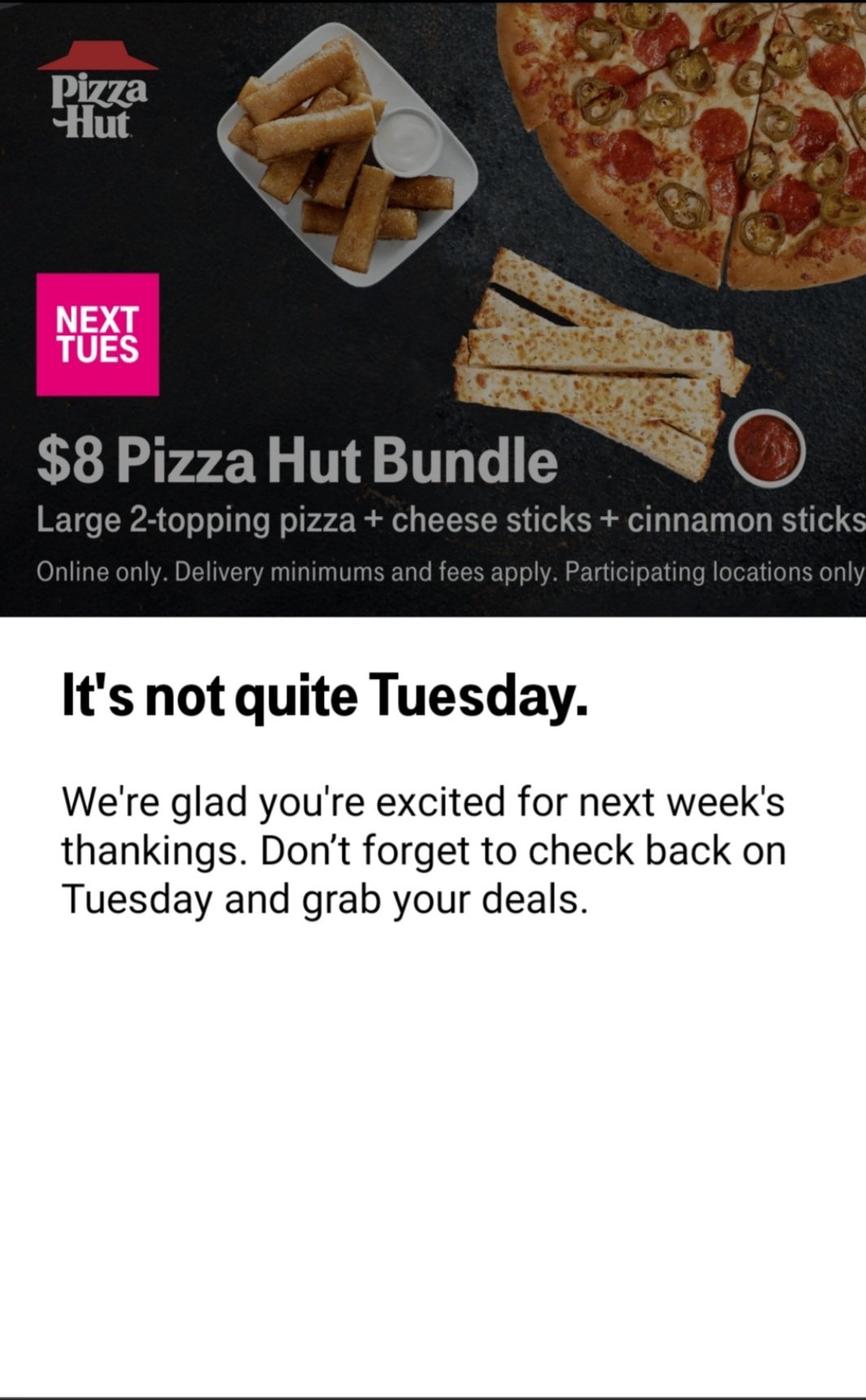 38 t mobile pizza hut coupon - usedbookk.blogspot.com Get Offer. Click through to see T-Mobile's current promo codes, coupon codes, deals, discounts, and special offers. SALE Sale. T-Mobile & Sprint merged to create America's 5G leader in coverage T-Mobile has America's largest 5G network and has won the most individual awards for nationwide 5G metrics in public reports from independent industry ...