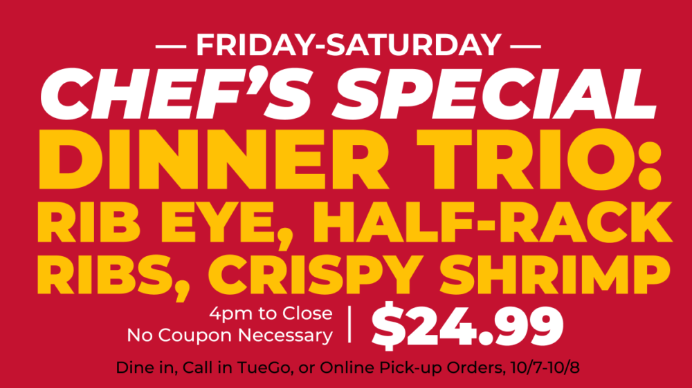 Ruby Tuesday Coupons, Promotions, Specials - October 2022 4 Coupon Codes added this week New Coupon Ruby Tuesday Friday and Saturday Chef's special: Hawaiian Rib Eye (6oz or 12oz) starting at $17.99 (4pm to close) In-Store Only At Participating Locations. Not valid with any other offer. Expires: Oct-31-2022 Get Deal Comment New Coupon Ruby Tuesday Happy Hour Every Day in the bar.